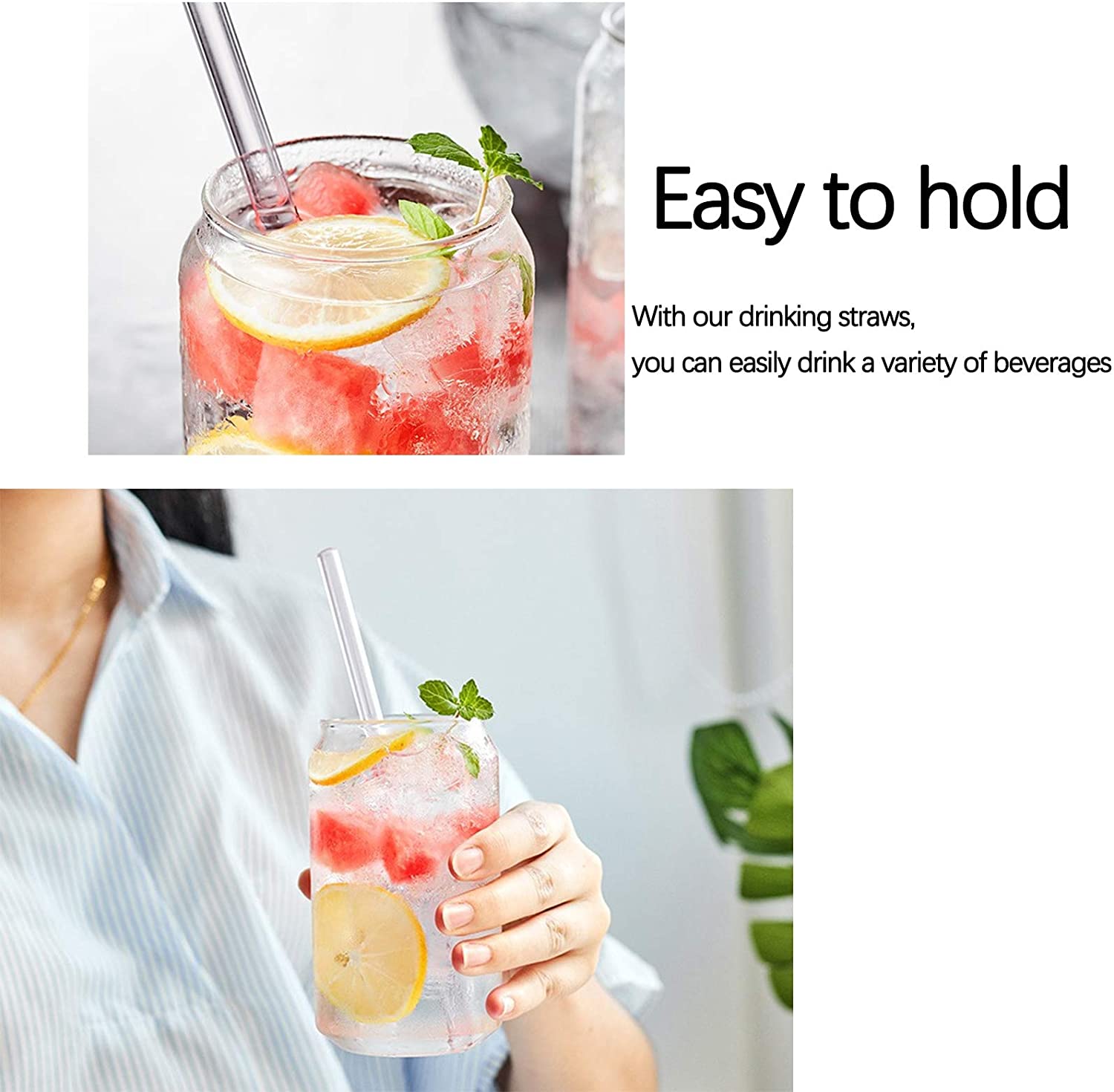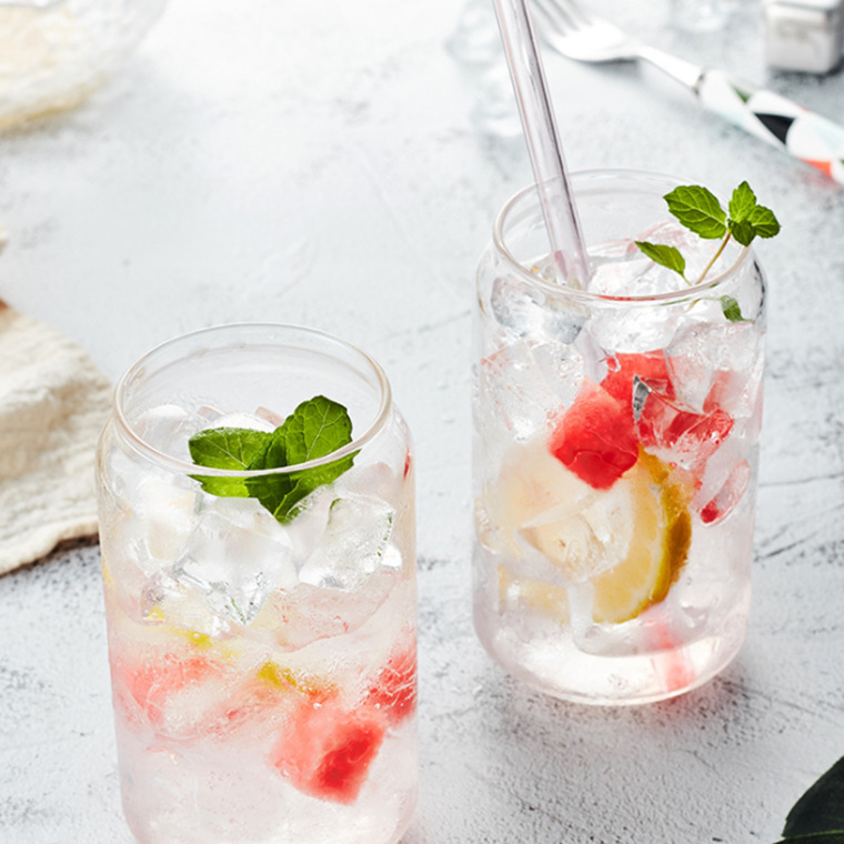 Amazon 16oz Borosilicate Glassware Coffee Cup Drink Mug Water Tumbler Dinking Glasses Beer Can Shape Glass with Bamboo Lid Straw