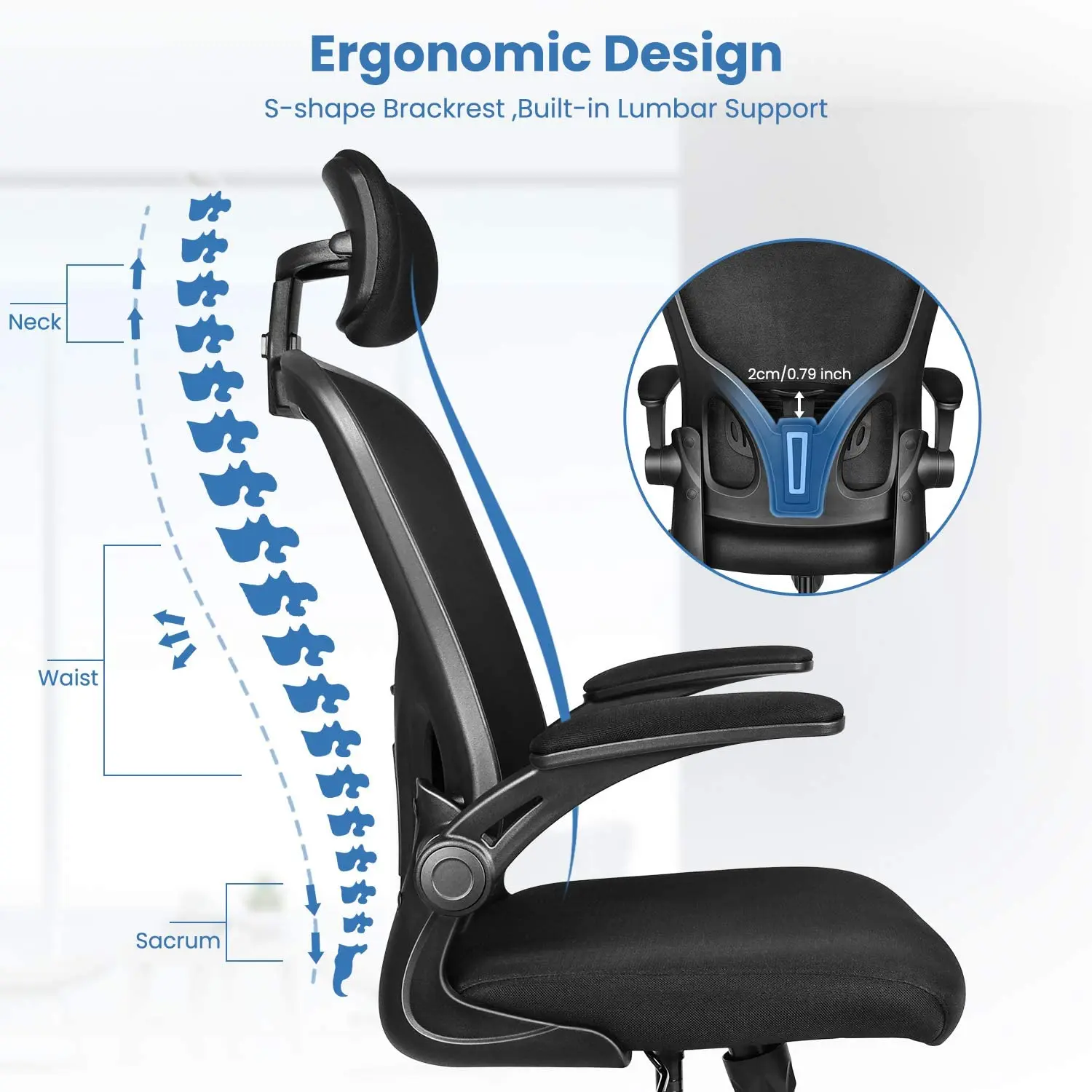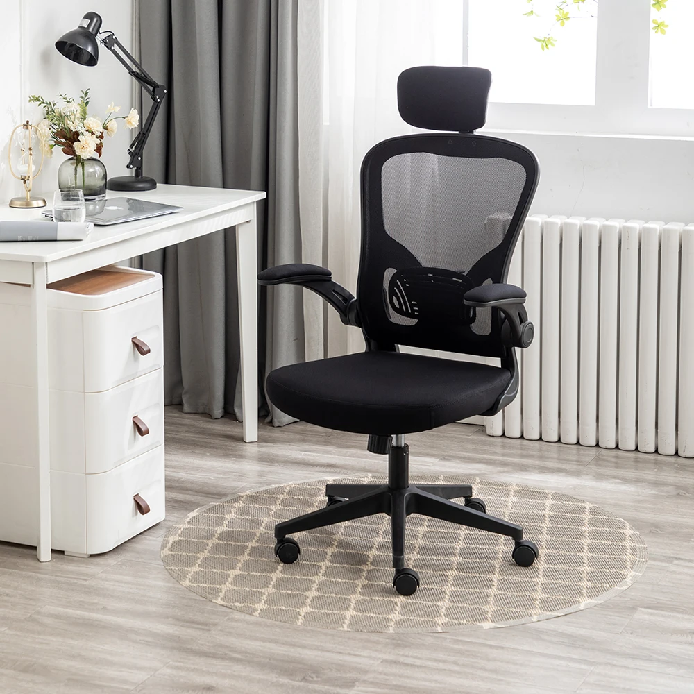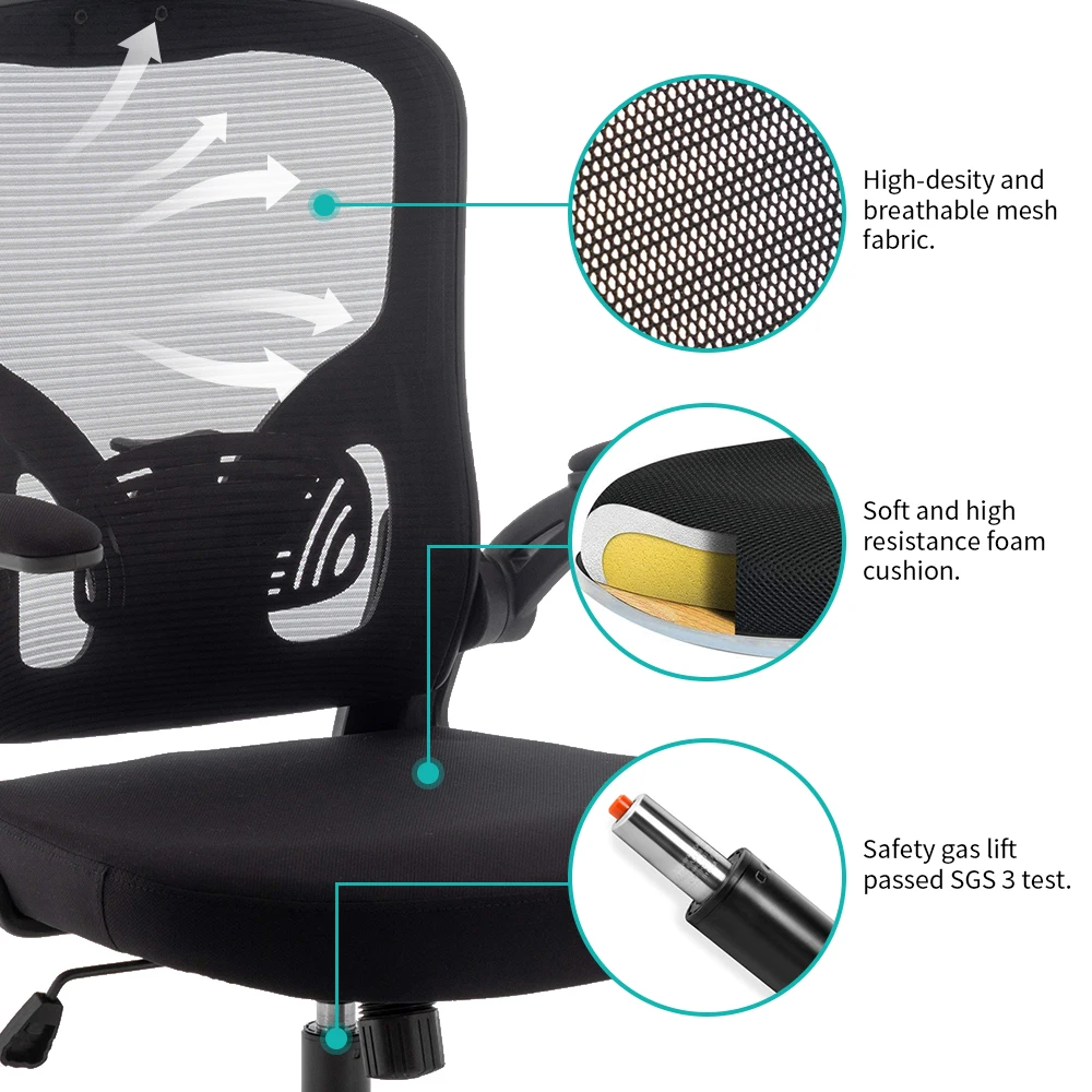 Flip up arms design makes your body closer to the desk, ensuring a good sitting posture, and is space saving