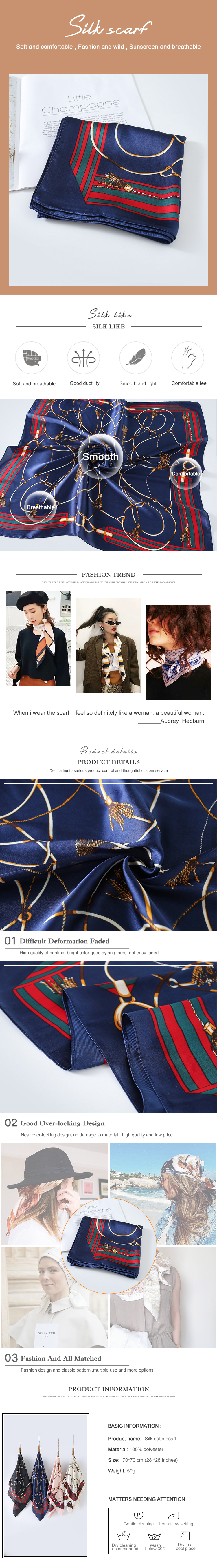 Customized luxury silk feel hair scarf for women satin